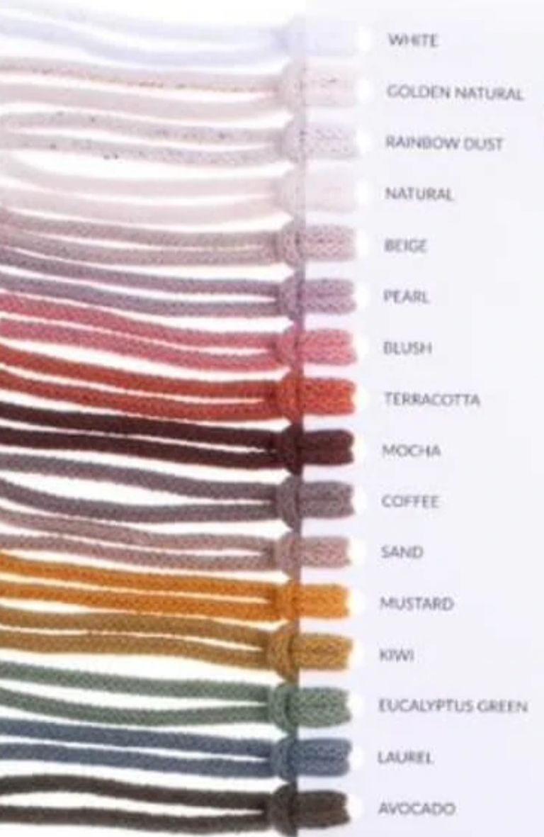 Ich kann leider keine Verfügbarkeitsgarantie geben, da die von mir verwendeten Baumwollschnüre aus recycelter Baumwolle hergestellt werden und dementsprechend nicht immer alle Farben bestellbar sind.